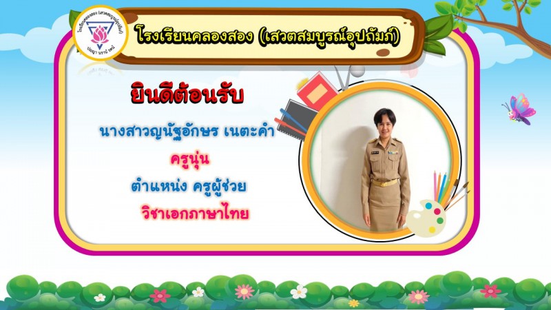 นางไพผกา ผิวดำ (ผู้อำนวยการโรงเรียน) คณะครูและบุคลากรทุกท่าน ยินดีต้อนรับคุณครูทั้ง 3 ท่าน เนื่องในโอกาสได้รับย้ายและบรรจุแต่งตั้งเข้ารับราชการ ตำแหน่งครูผู้ช่วย ณ โรงเรียนคลองสอง (เสวตสมบูรณ์อุปถัมภ์)