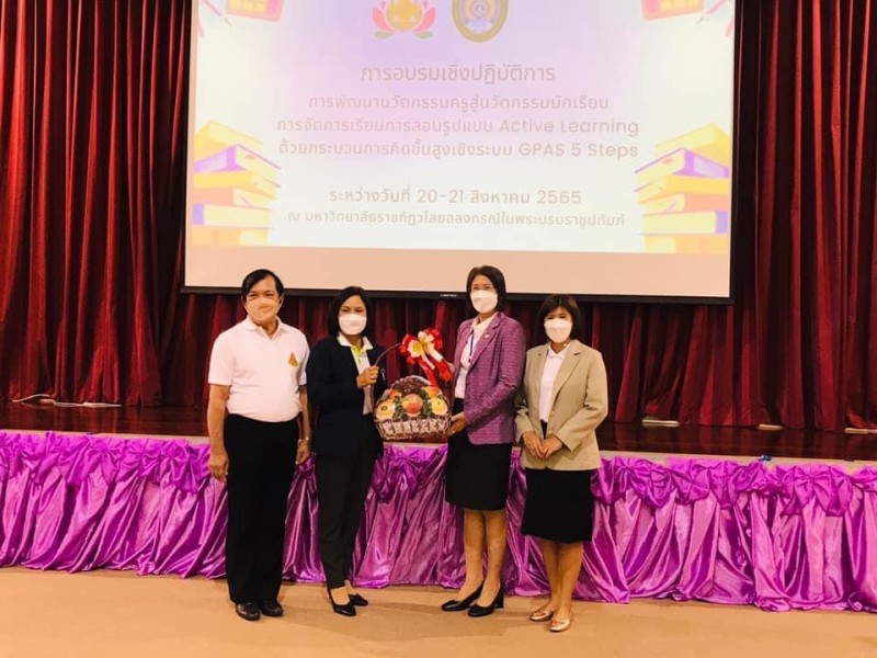 นางไพผกา ผิวดำ ผู้อำนวยการโรงเรียน และคณะครูโรงเรียนคลองสอง (เสวตสมบูรณ์อุปถัมภ์) เข้าร่วมอบรมโครงการเชิงปฏิบัติการ การพัฒนานวัตกรรมครูสู่นวัตกรรมนักเรียนการจัดการเรียนการสอนรูปแบบ Active Learning ด้วยกระบวนการคิดขั้นสูงเชิงระบบ GPAS 5 Steps ระหว่างวันที่