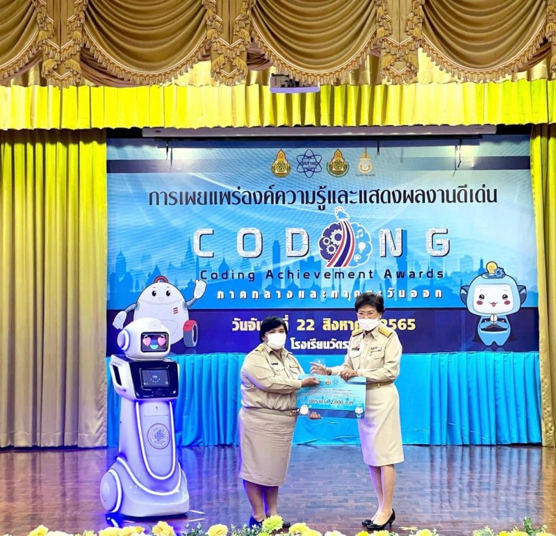 ขอแสดงความยินดี กับครูจิราพร จำปาเทศ กับรางวัลด้าน Coding "CODING Achievement Awards" ประเภท Plugged Coding ระดับประถมศึกษา จากคุณหญิงกัลยา โสภณพานิช รมช.กระทรวงศึกษาธิการ ในงานเผยแพร่องค์ความรู้และแสดงผลงานดีเด่น