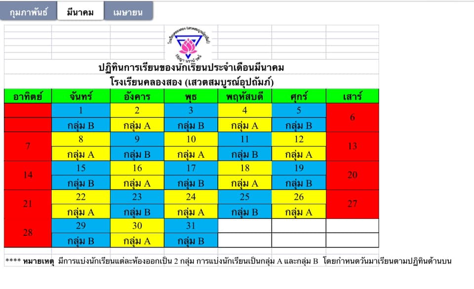 ปฏิทินการเรียนของนักเรียนประจำเดือนมีนาคม